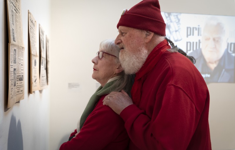 Mail photographer Max Lesser and wife Gaylene check out some of the old newspapers on display.