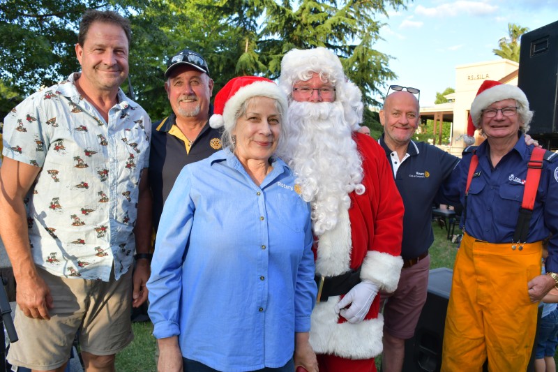 Santa is pictured with some of his helpers from Rotary and the CFA including Mayor Cr Matthew Driscoll.