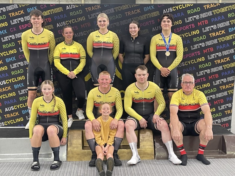 Castlemaine Cycling Club members gave their all at the state title event. (Back L-R) Bryce Nicholls, Emma Jackson, Leshae Maddern, Montanna Collier and Zaren Fong-Sutton.