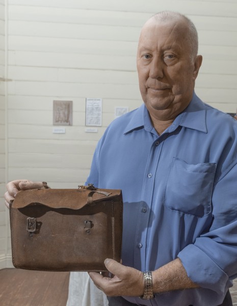John Sikora with the satchel which contained Agnes’ books.