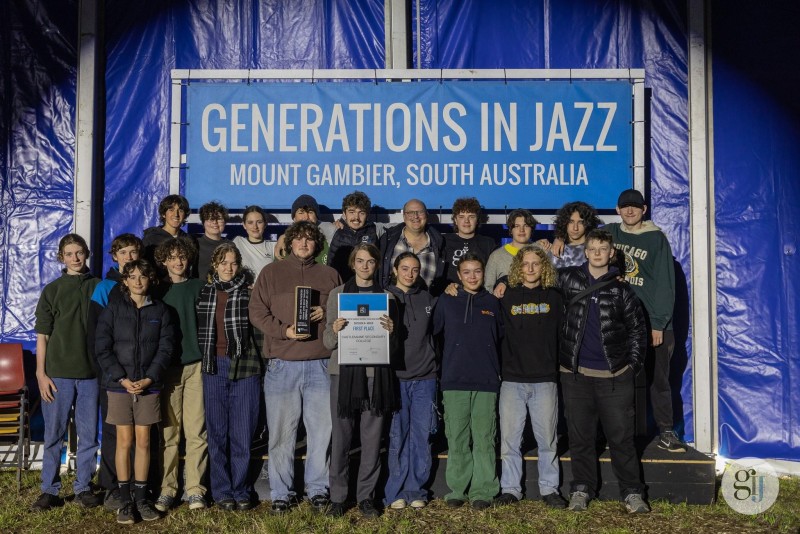 The CSC stage band are proudly pictured with their award.