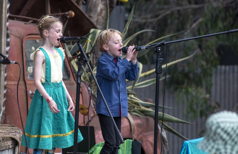 Siblings Heidi and Rupert perform a number as part of the inaugural Kids Karaoke segment. Photo: Diana Domonkos.