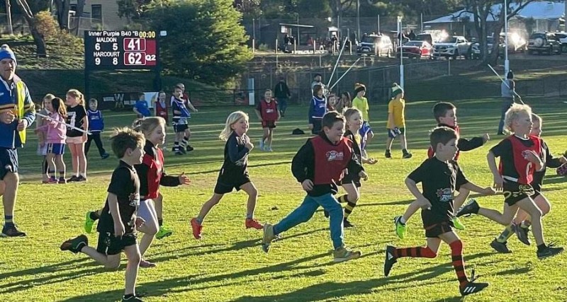 The littlest players take to the field at half time.