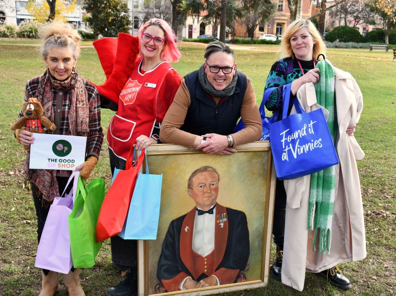 Julie Roberts from the Good Op Shop, Cahra Swarris from the Salvos, Peter Bottomley from MAAW and Kate McDonald from Vinnies encourage community members to take advantage of the late night shopping opportunity.
