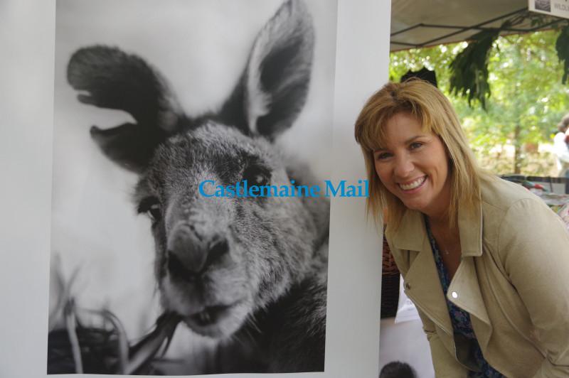 Amy, a model from Italy, enjoys a closer look at this kangaroo image at the Taradale Mineral Springs Festival. Photos: Max Lesser. (cOut&About170323-4)