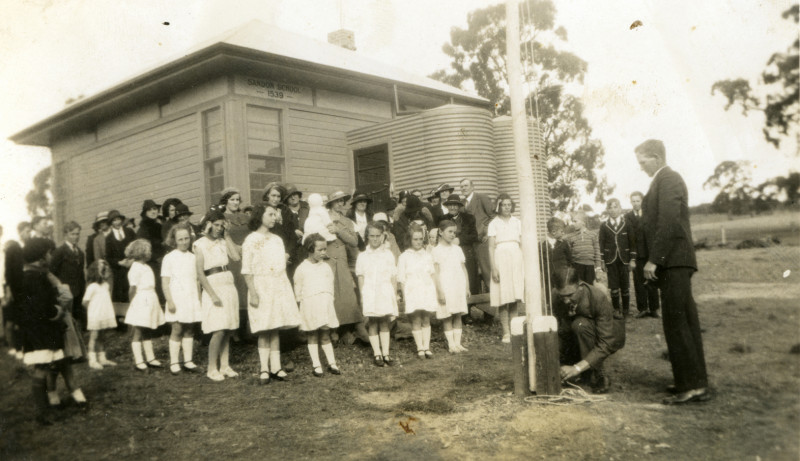 Sandon State School was relocated to a new site in 1936. Students are pictured outside the new building at the opening.