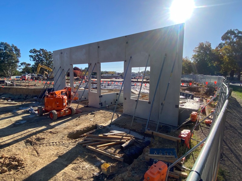large pre-cast concrete walls in place.
