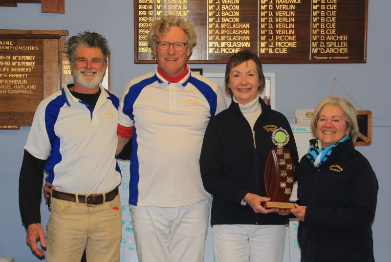 Doug McConville Trophy runners-up Peter and Steve and winners Anne and Catherine. Both teams have now won the trophy twice.